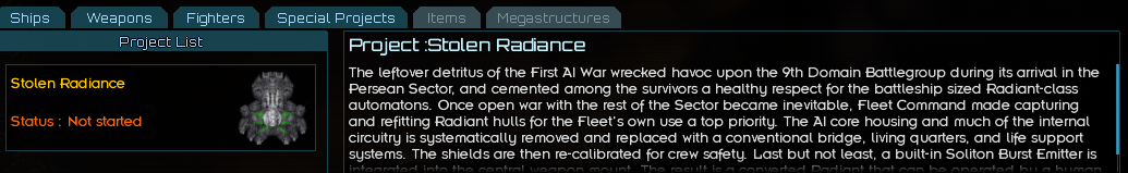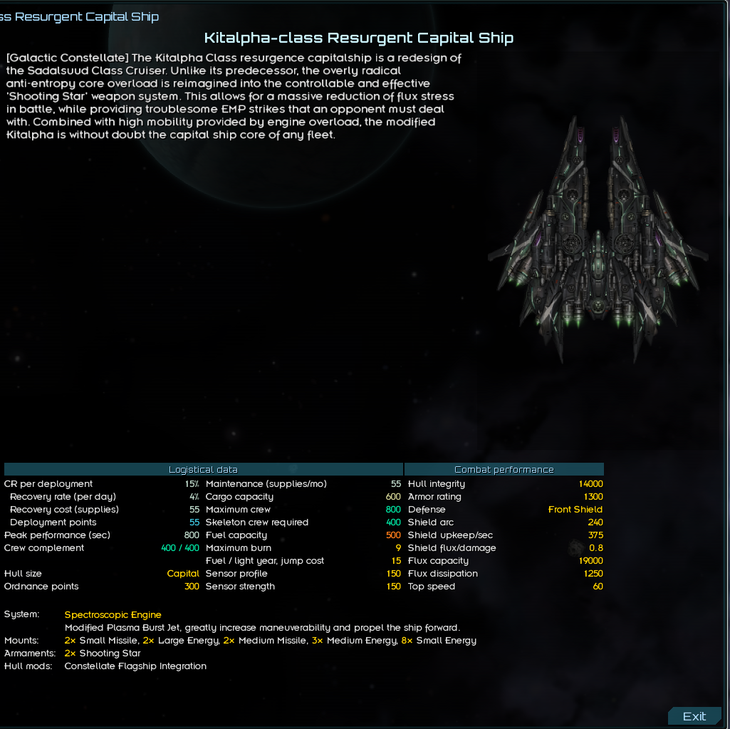 Stardust Ventures is a minor shipyard in control of the Talia system, just northeast of the core worlds. Many of the ships and equipment of this shipyard have been integrated into the vanilla midline fleets with the Hegemony, League, and Diktat all getting different sets of gear.