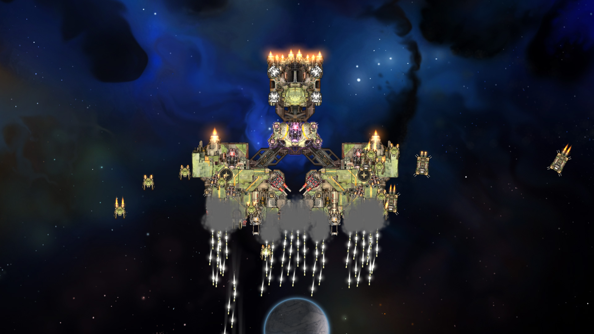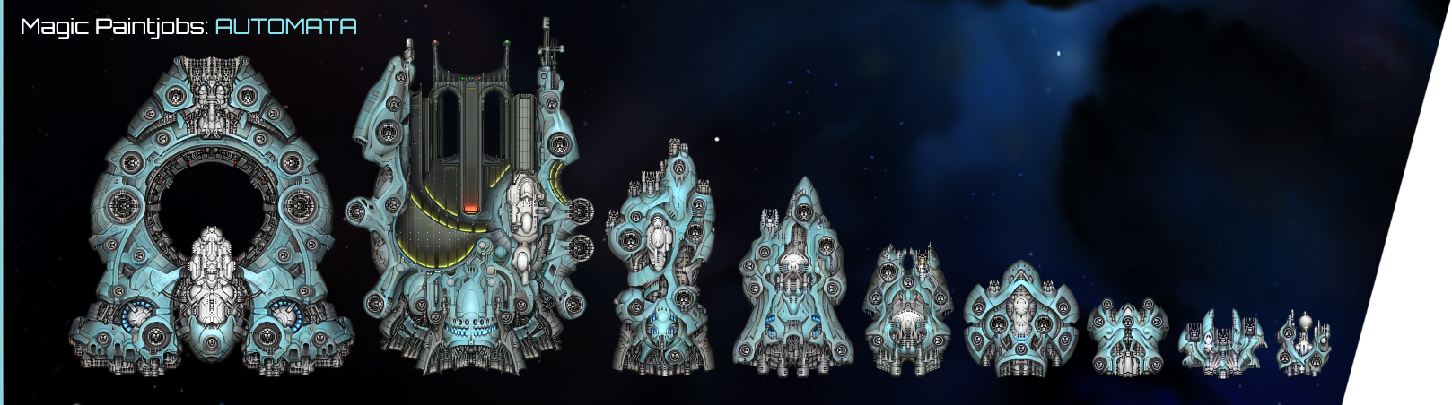 Battleship in space! They are based from various battleships such as Yamato, Iowa, Richelieu. Their sizes are not proportional to each other as you can see. I try my best to make them balance while enjoyable as artillery ship. The name are based on Japanese deities and folklore. Hope you guys enjoy it.
