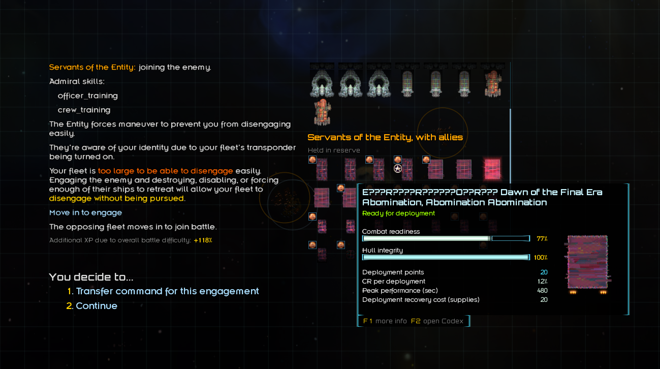 An in-development mod focused around the Domain Exploration Derelicts, the green droneships you fight early in the game... and also the Abyss apparently. Currently adds about 60 new automated ships and several types of derelict fighters to the game that are hopefully worth actually adding to your fleet. ```Version 0.0.23