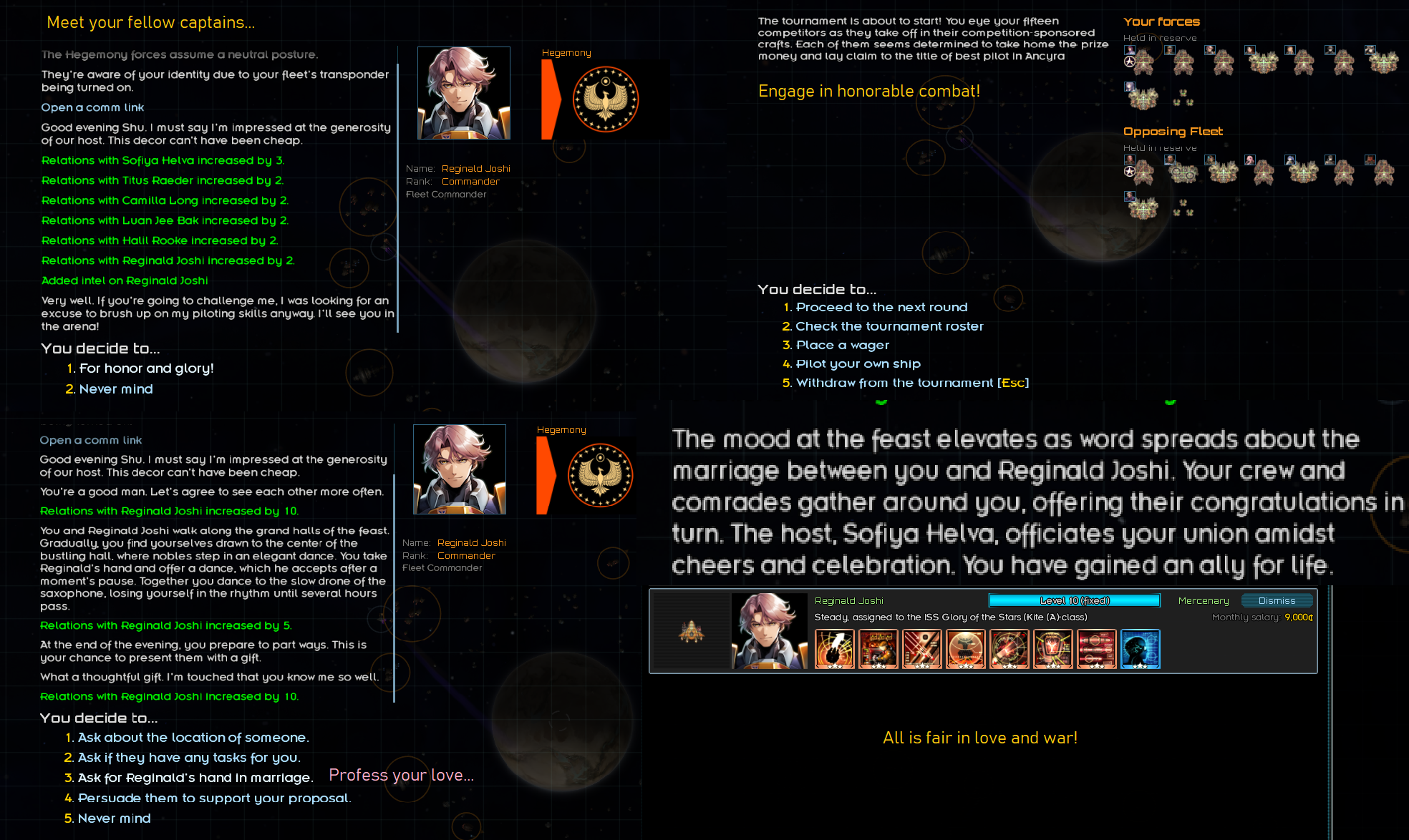**Heggie Tales** *Formerly known Tales from the Hegemony* is a new and very lore friendly Quest mod! It introduces the player into the world of the Hegemony and it's noble houses. Do not expect flashy ships or AI, but realistic people living in a crapsack universe.